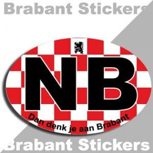 Deze NB-Sticker is ovaal. Op de achtergrond staat de rood geblokte vlag van Brabant. De letters NB staan voor Noord-Brabant en deze zijn in het zwart op de geblokte vlag gedrukt.